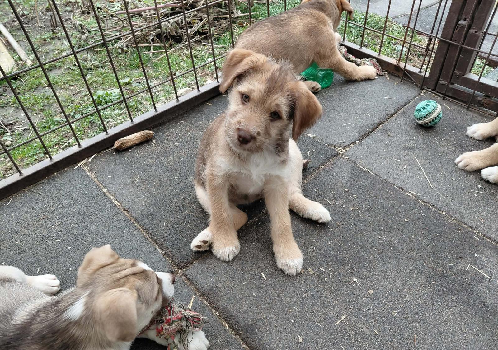 Linda hat sich in den letzten Wochen sehr gut entwickelt. Aus dem winzigen, frierenden Welpenmädchen ist ein lebhaftes, neugieriges Hundekind geworden. Sie spielt ausgelassen mit ihren Geschwistern, flitzt durch den Zwinger und freut sich über jedes Spielzeug, das sie ergattern kann.